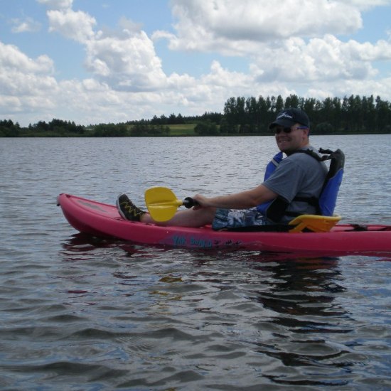 Each year Erin and I try to test out a new lake with our kayaks. We may fit in two this year. Yesterday, we drove down to LaMoure and kayaked Lake LaMoure. The water was very calm and easy paddling, and there was very little boat traffic. The lake is very pretty with lots of trees and well groomed beach areas. We enjoyed it and may have to visit the area again soon.