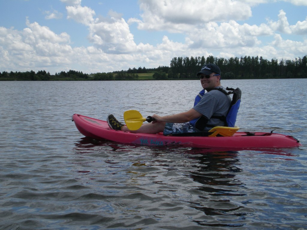 Each year Erin and I try to test out a new lake with our kayaks. We may fit in two this year. Yesterday, we drove down to LaMoure and kayaked Lake LaMoure. The water was very calm and easy paddling, and there was very little boat traffic. The lake is very pretty with lots of trees and well groomed beach areas. We enjoyed it and may have to visit the area again soon.