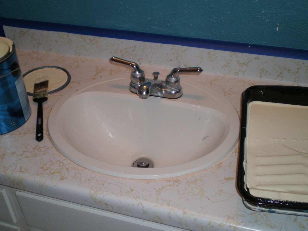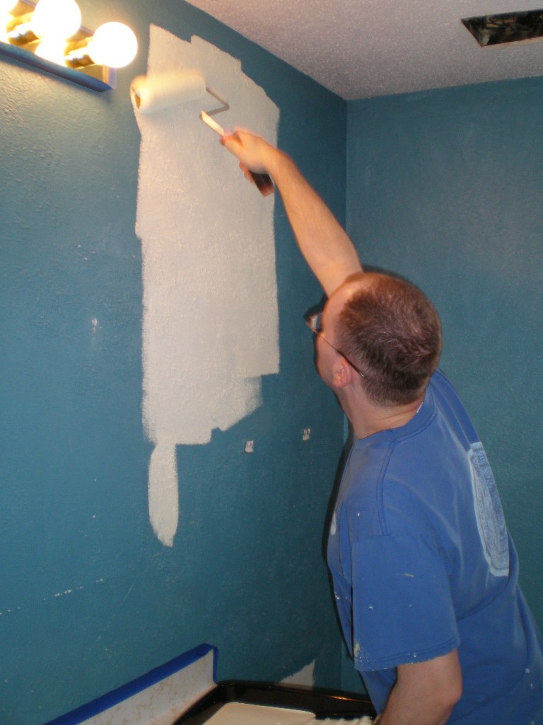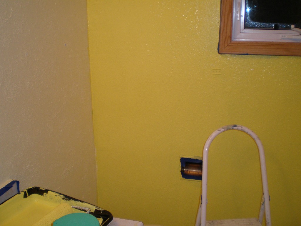 We started a minor remodeling project in our upstairs bathroom last week. Our blue bathroom is now yellow and waiting for new toilet, floor, faucet, and vanity top. Hopefully, the remaining pieces will be in place next week. Here are a few photos of the painting process.