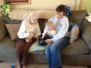 March 5, 2014 Dave Fun visit with Grandma Jean Erin’s mom Jean came to visit last weekend. Gabe had fun showing Grandma all if his stuff and explaining things. In this picture he is showing Erin and Grandma how to work Aunt Toni’s iPhone. Share this: Click to share on X (Opens in new window) X Click to share on Facebook (Opens in new window) Facebook Like Loading...