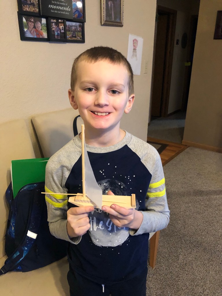 February 18, 2022 Dave Building a boat Gabe built a sail boat from a kit he received from Ron. Share this: Click to share on X (Opens in new window) X Click to share on Facebook (Opens in new window) Facebook Like Loading...