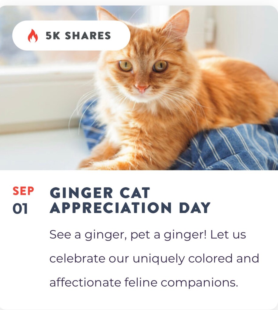 September 1, 2024 Dave Ginger cat appreciation Share this: Click to share on X (Opens in new window) X Click to share on Facebook (Opens in new window) Facebook Like Loading...